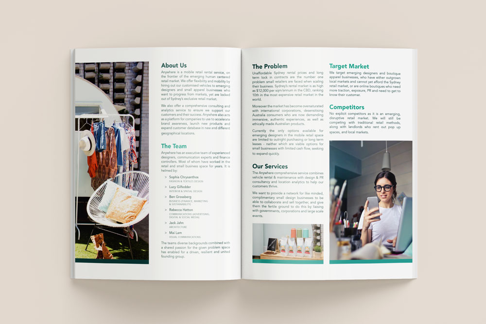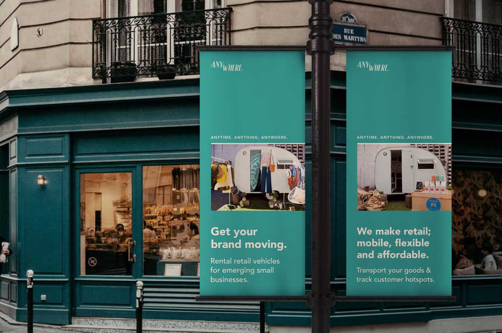 Anywhere acts as the middle man, a temporary solution for businesses moving from small market stalls who wish to eventually own a brick and mortar store. Or otherwise a permanent solution for the travelling shop owner who enjoys meeting different types of people.
